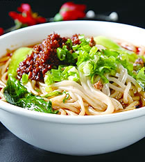担担面颇具特殊风味,因常由小贩挑担叫卖而得名。2013年,担担面入选商务部、中国饭店协会评选的“中国十大名面条”。